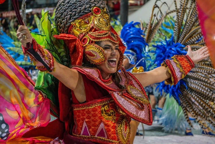 • Estética: Carros alegóricos e fantasias representaram elementos dos rituais, com destaque para cores vibrantes e símbolos religiosos.