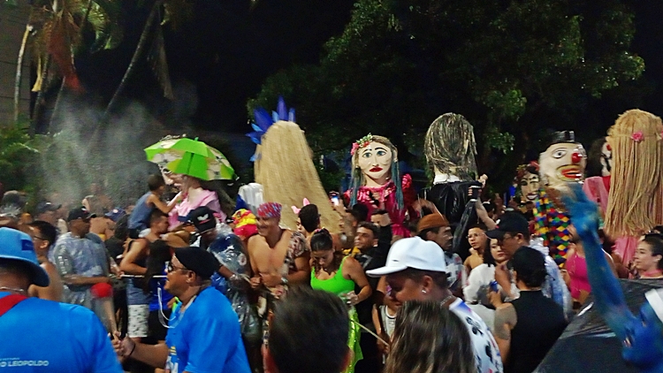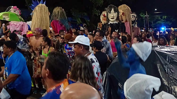 onde os famosos bonecões dos blocos desfilaram,