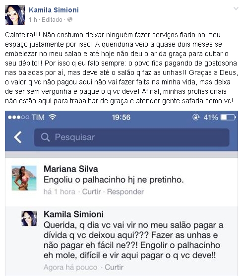 detonou e chamou a rival de caloteira, dizendo que