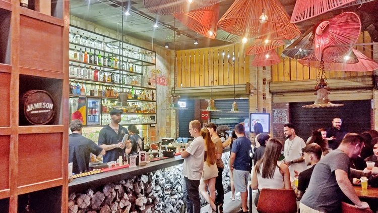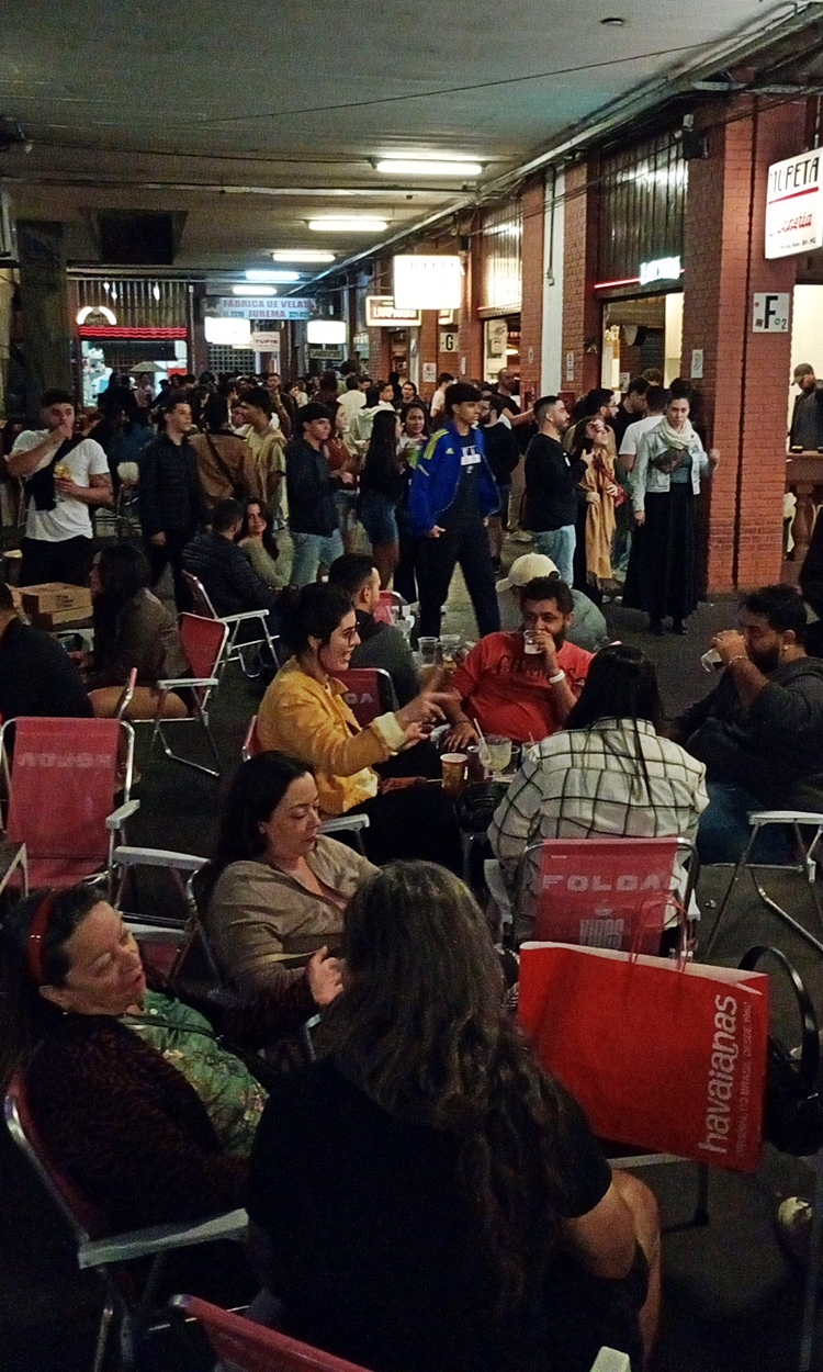 bares e calçadas cheias, especialmente nas ruas