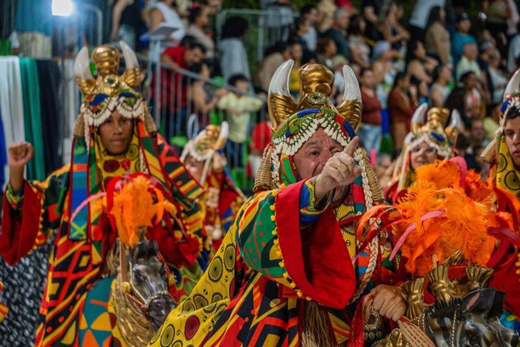 • Estética: Carros alegóricos e fantasias representaram elementos dos rituais, com destaque para cores vibrantes e símbolos religiosos.
